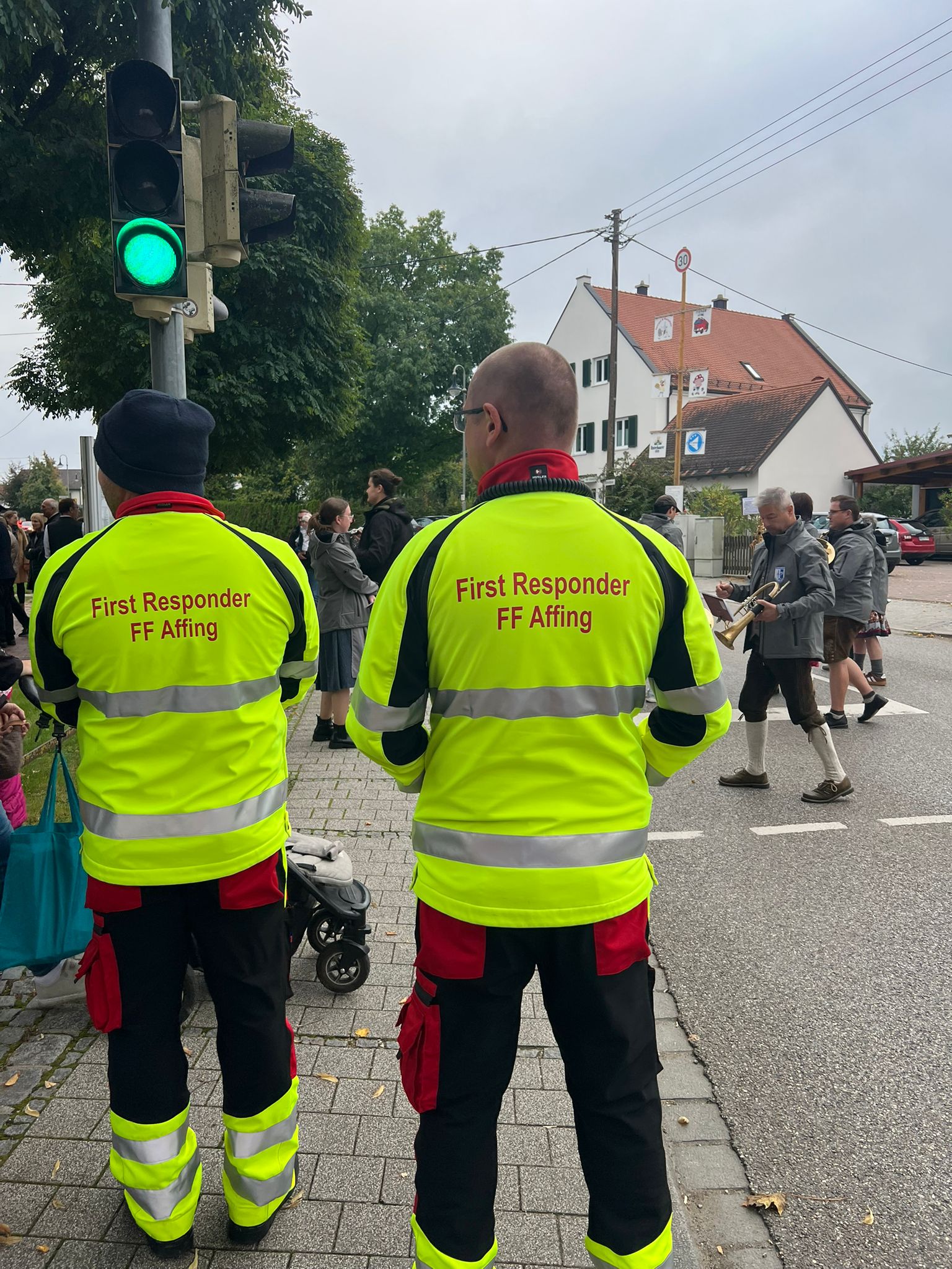 Für den Festumzug übernahmen vier unserer Kameraden die Straßensperrung, um einen sicheren Ablauf zu gewährleisten. Zudem waren zwei unserer First Responder vor Ort, um im Bedarfsfall sofort Hilfe leisten zu können.